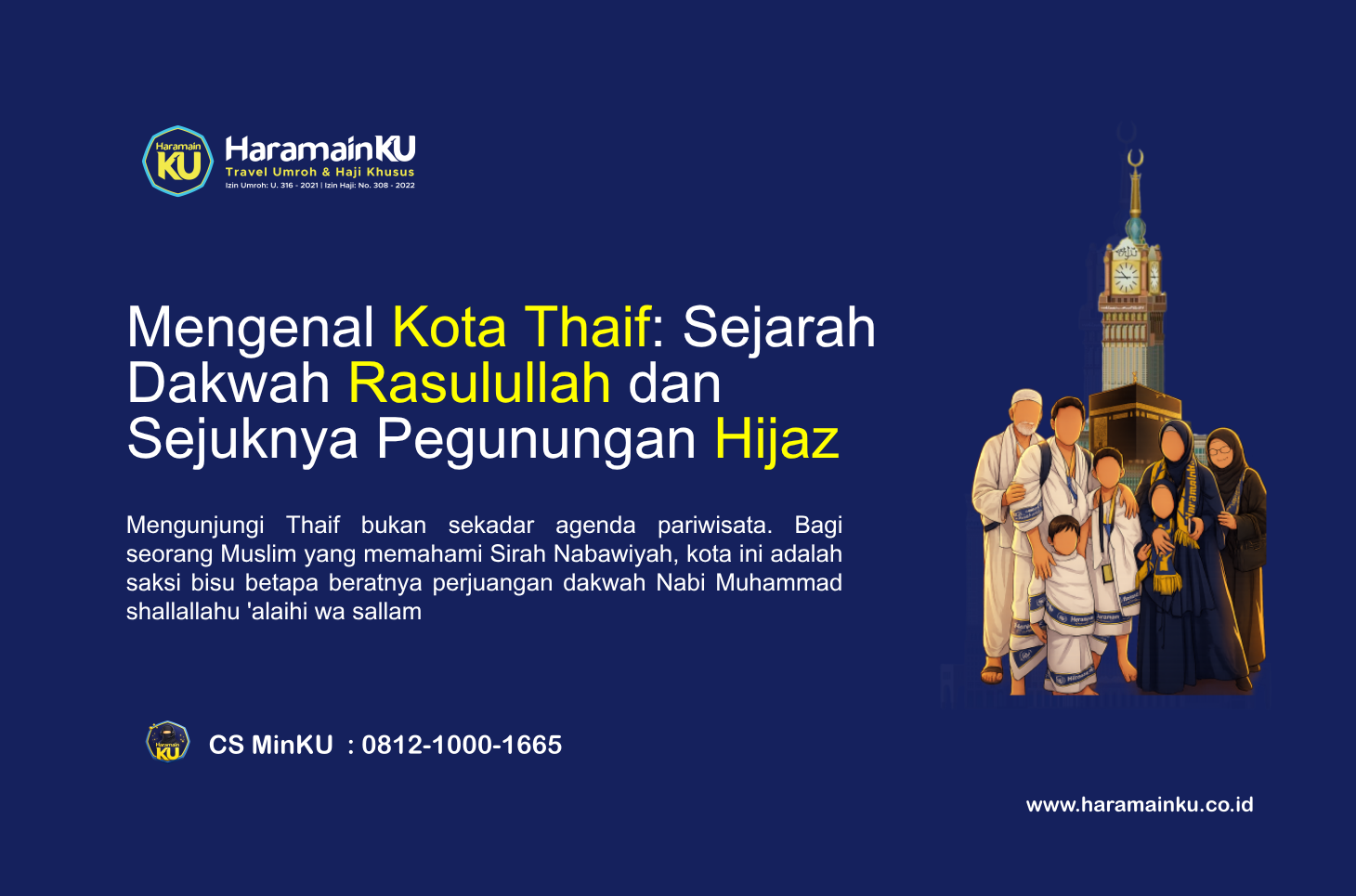 Menyelami sejarah di Kota Thaif akan menambah kedalaman iman dan rasa cinta kita kepada Rasulullah. HaramainKU menyediakan paket umroh khusus yang mengintegrasikan city tour bersejarah ke Thaif. Pastikan perjalanan ibadah Anda sarat akan hikmah. Hubungi konsultan kami di WhatsApp: https://wa.me/6281210001665.